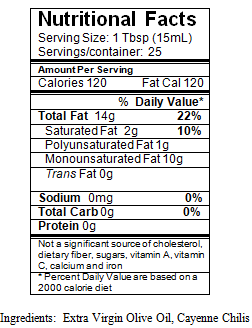 Our infused olive oil starts with pure extra virgin olive oil which is then blended with seasonal herbs and spices creating a delicate flavor perfect for cooking, dressings, or dips.
