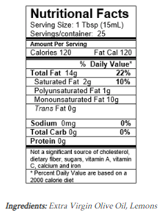 Our fused olive oil, also known as agrumato in Italy, is made by crushing whole fresh fruits, herbs or vegetables with the olives during the cold pressed process, providing an appealing and delectable taste perfect for marinades, salad dressings, or an overall additive to any dish.